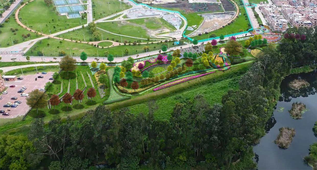 Este espacio conecta a comunidades diversas —residentes, visitantes, grupos ambientales y comunidad indígena— mediante una red de senderos, plazoletas y zonas temáticas distribuidas en ocho tramos (A–H). Cada tramo ofrece experiencias únicas: plazoletas de sonidos y flores, áreas de juego infantil, zonas de calistenia y ejercicio, un teatrino para actividades culturales, espacios multisensoriales, senderos peatonales y deportivos, zonas caninas y canchas múltiples.